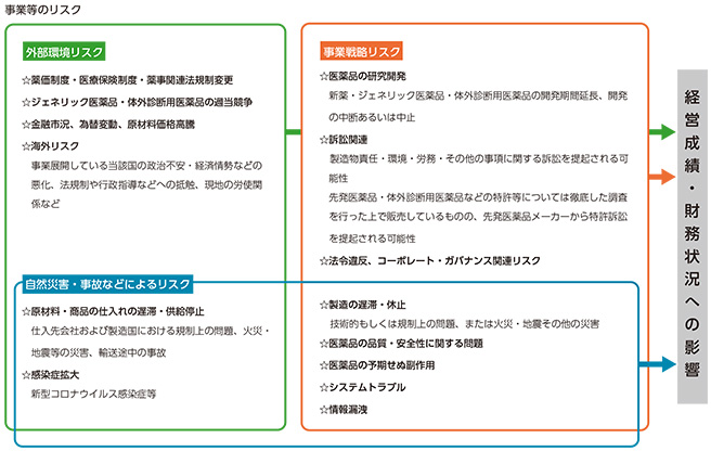 「内部統制基本方針」に従い、当社の経営に重大な影響を及ぼす種々のリスクを把握し、管理・対応を行うために「リスク管理規程」を制定し、その中でリスク管理担当取締役を委員長とするリスク管理委員会を設置することを定めています。特にコンプライアンスおよび情報セキュリティに関するリスクについては、それぞれに委員会を設置し、リスク対応を行うほか、社員への啓発活動にも取り組んでいます。